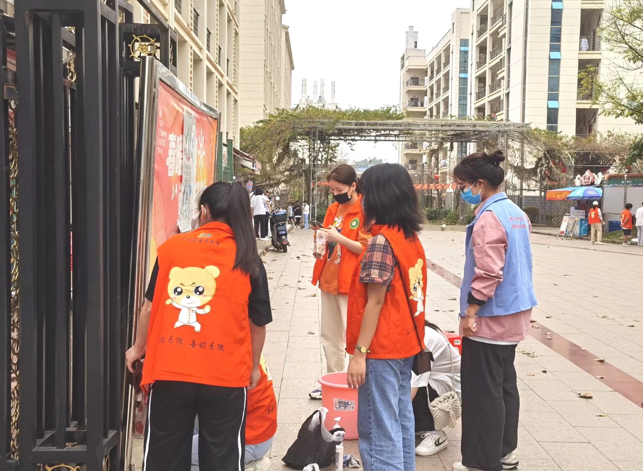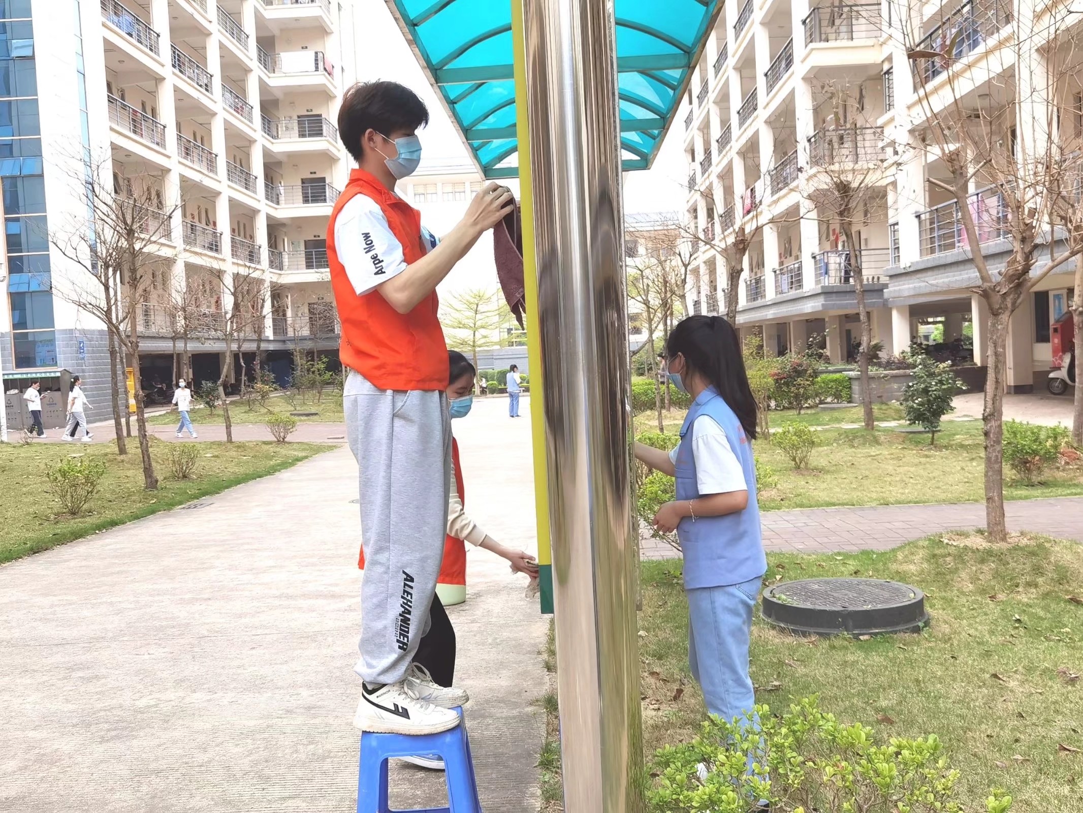 在清扫宣传栏活动中,学生分组对校园内的宣传栏进行清扫。大家认真清扫、配合默契,清除了宣传栏上的灰尘、胶布等污物,校园内的宣传栏焕然一新。劳动中的志愿者也成了一道亮丽的风景线。