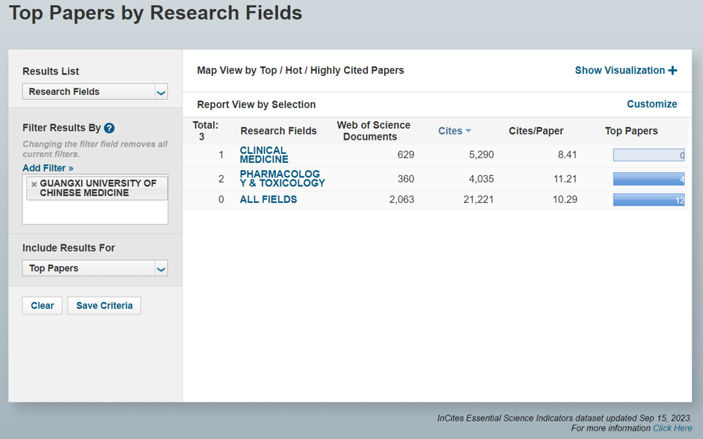 本期数据显示,药理学与毒理学学科全球共计1224所机构入围ESI全球排名前1%,鸭脖药理学与毒理学学科排名1194名,共发表论文360篇,总被引频次4035次,篇均被引11.21次,高被引论文4篇。