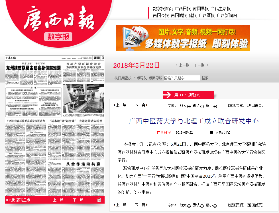 广西日报:YABO鸭脖与北理工成立联合研发中心 来源:广西日报 日期:2018-05-23 点击数: 次 分享到: 本报南宁讯(记者/刘琴)5月21日,YABO鸭脖、北京理工大学深圳研究院医疗器械联合研发中心成立揭牌仪式暨医疗器械研发论坛在YABO鸭脖五合校区举行。联合研发中心的任务是加大对医疗器械的研发力度,助推医疗器械科研成果产业化,助力广西“十三五”发展规划和广西“中国制造2025”;利用广西中医药资源优势,将医疗器械与中医药和民族医药产业相互融合,打造广西乃至国际区域医疗器械研发的创新、创业平台。 打印正文 关闭本页