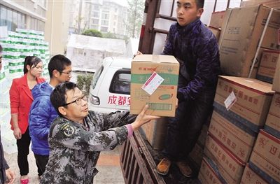 23日,芦山县城阴雨绵绵,气温骤降到12℃。上午9时许,一辆满载灾区医药物资的货车刚抵达芦山县人民医院,身材高大的陈文斗与妻子带领着医院内的10余名医疗志愿者,赶忙上前卸货,招呼众人一字排开,一箱又一箱的急缺药品通过人手传递很快在急诊大厅堆成一座小山。沉重的医疗器械陈文斗二话不说,双手一抱快速送至2楼临时仓库后,马上折返搬运下一批药品。