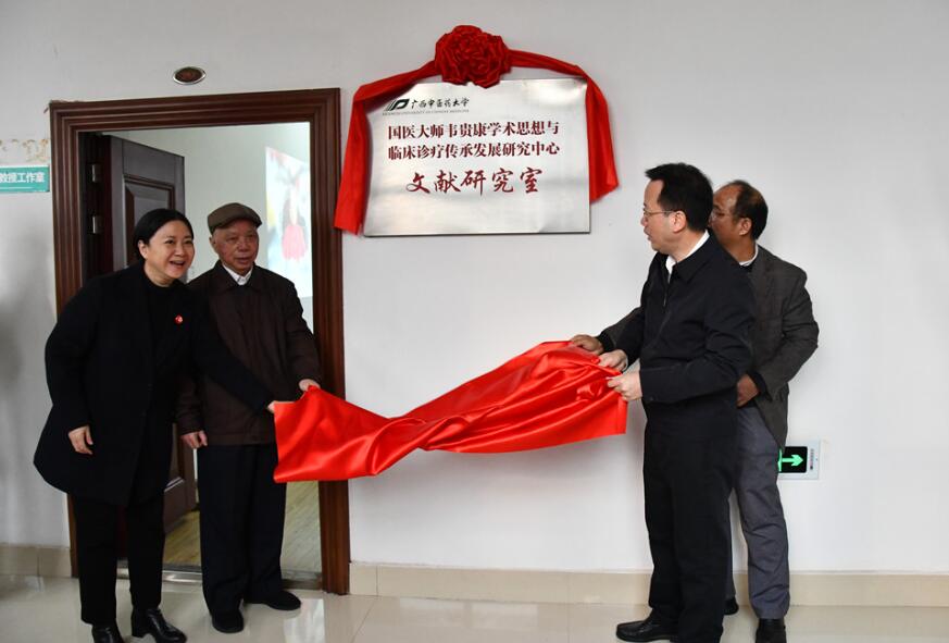 3月2日上午,国医大师韦贵康学术思想与临床诊疗传承发展研究中心文献研究室揭牌仪式在YABO鸭脖仙葫校区举行。