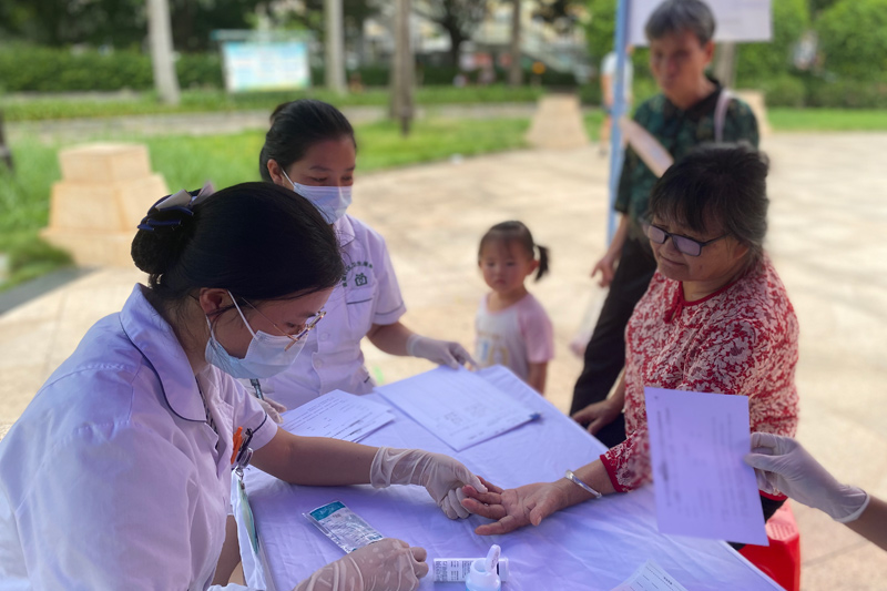 7月28日,主办方分别在南宁市江南区汇东星世界小区和青秀区仙葫大道天池山广场开展线下宣教活动。活动包括专家义诊、健康宣教、乙肝抗体检测、宣传展板科普、有奖问答互动、音频科普、发放健康小礼品等内容。活动现场,工作人员为附近居民提供义诊、医疗咨询和健康指导服务。同时,工作人员也对居民提出的相关问题进行了细致解答。(朱晓玲 冯肖慧)