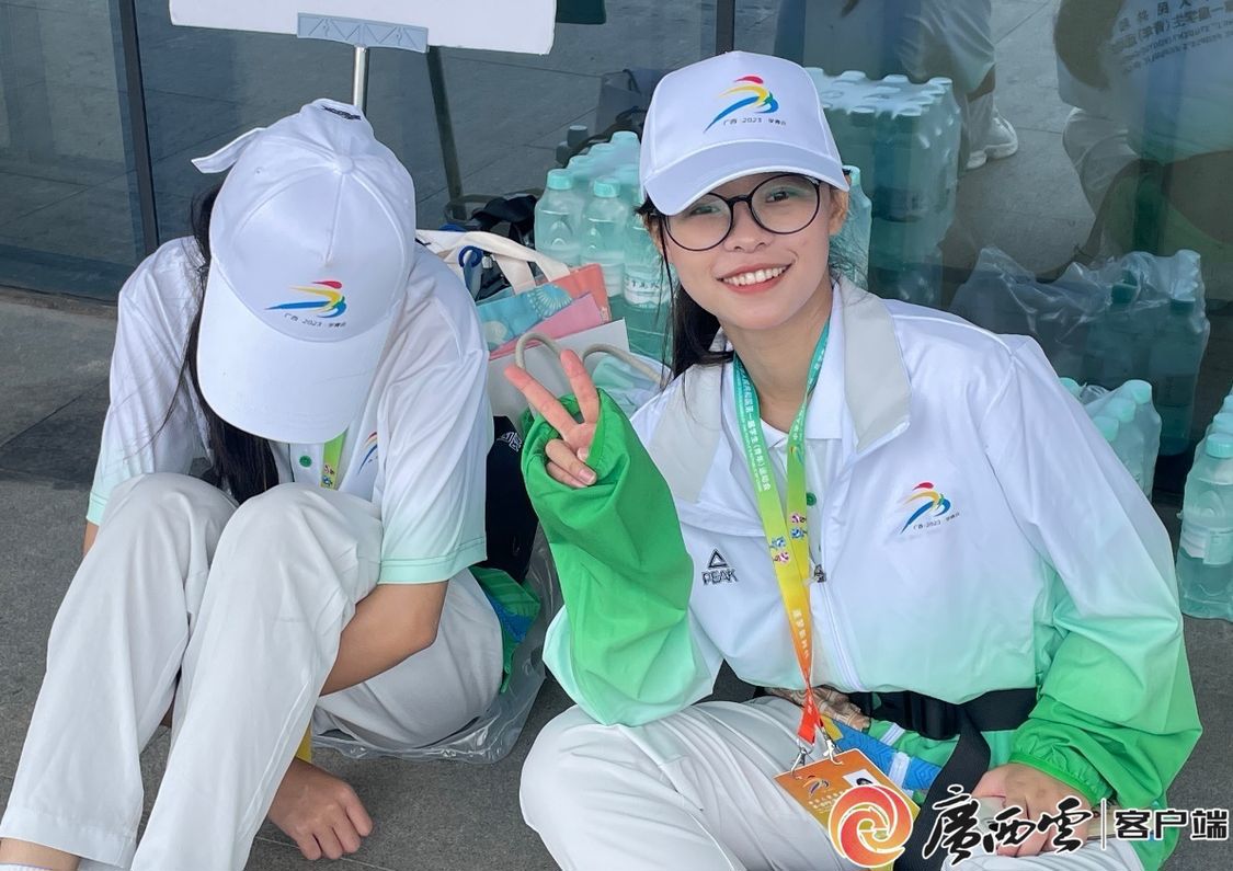 我们宿舍四位同学都在不同的岗位上,所以会经常分享在志愿服务过程中碰到的趣事。在开幕式排练工作中,我们经常感叹舞台的壮丽炫彩,每一次观看都是不同的感受,尽情地享受视觉盛宴。在运动员村中,舍友总是提起她们碰到了很多友善可爱的运动员,经常听到运动员夸赞广西人民的热情,也会分享一些美食给志愿者,非常能感受到她们的热情和朝气蓬勃。在非遗项目体验室中,运动员们都会耐心地听从指导。我们都在各自的岗位上发光发热,为学青会贡献出自己的一分力量。