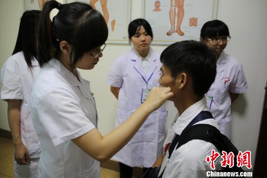 “在台湾没有见过点线疗法,这边的分科很细,很多都是台湾没有的。”一名来自台湾慈济大学中医药专业准大四学生陈玮莹告诉记者。