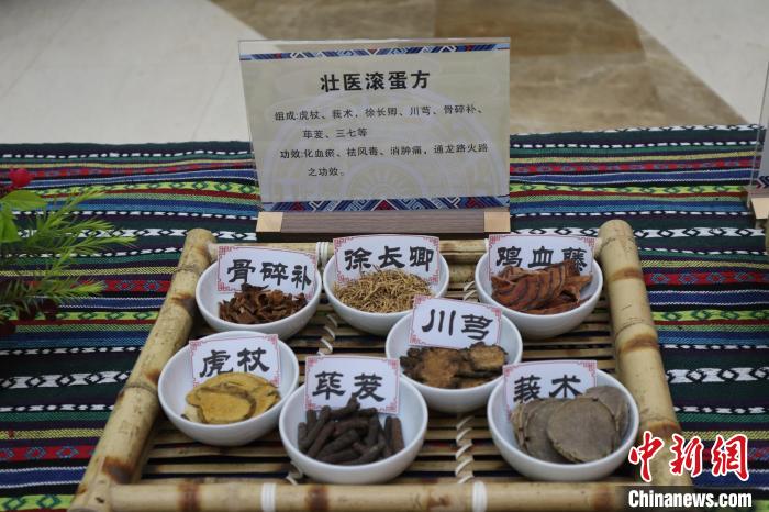 5月10日,广西国际壮医医院内,展台上展示的壮医滚蛋方的内容。 朱淑雨 摄