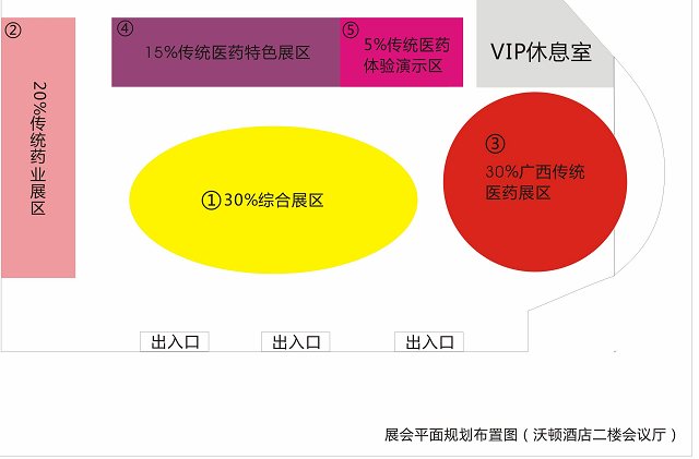 传统医药展安排在二楼多功能厅,分为五个展示区。具体设计数据(展位面积、基本展位分布图等)见附件。