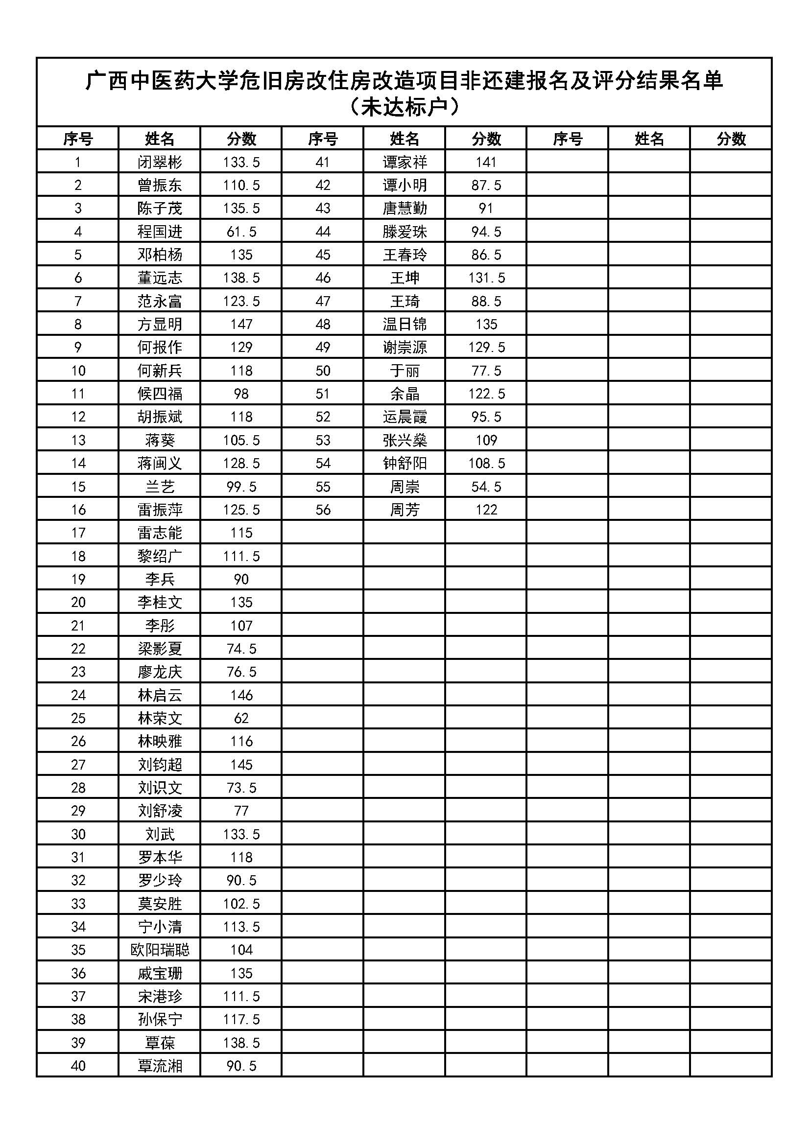 2.符合面积未达标购房资格职工共计56名;