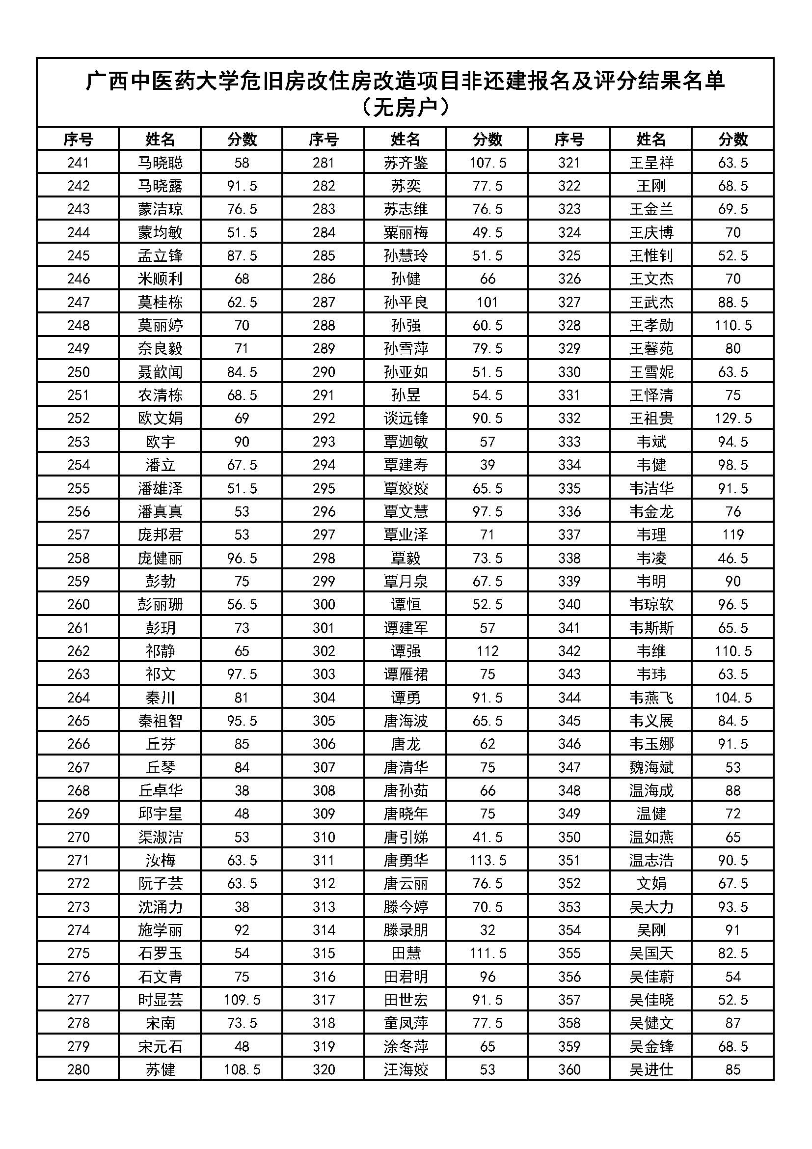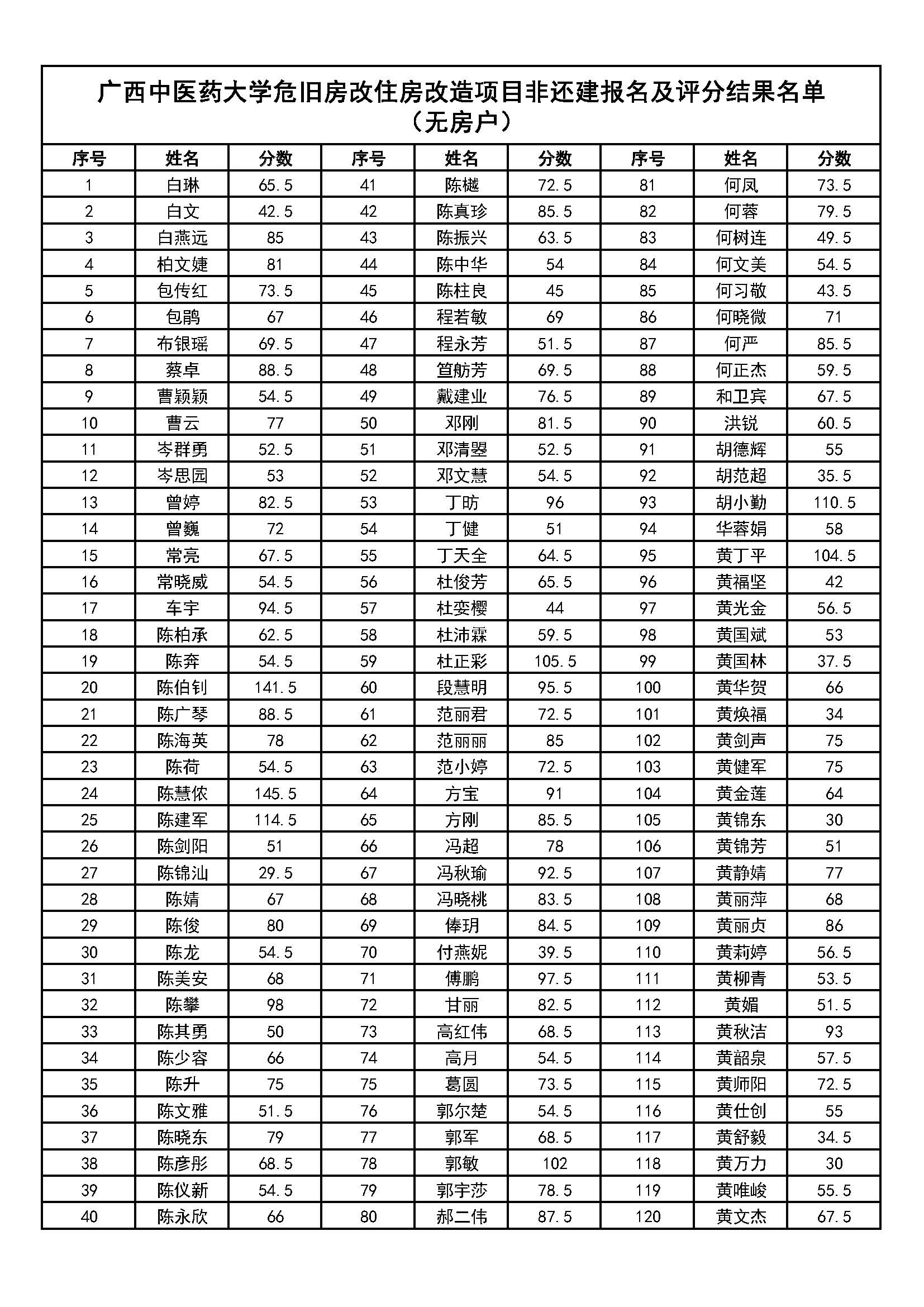 附件:YABO鸭脖危旧房改住房改造项目非还建报名及评分结果名单