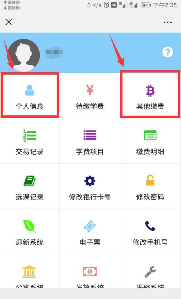 (2)进入微信公众号,点击“微服务”—“网上缴费”