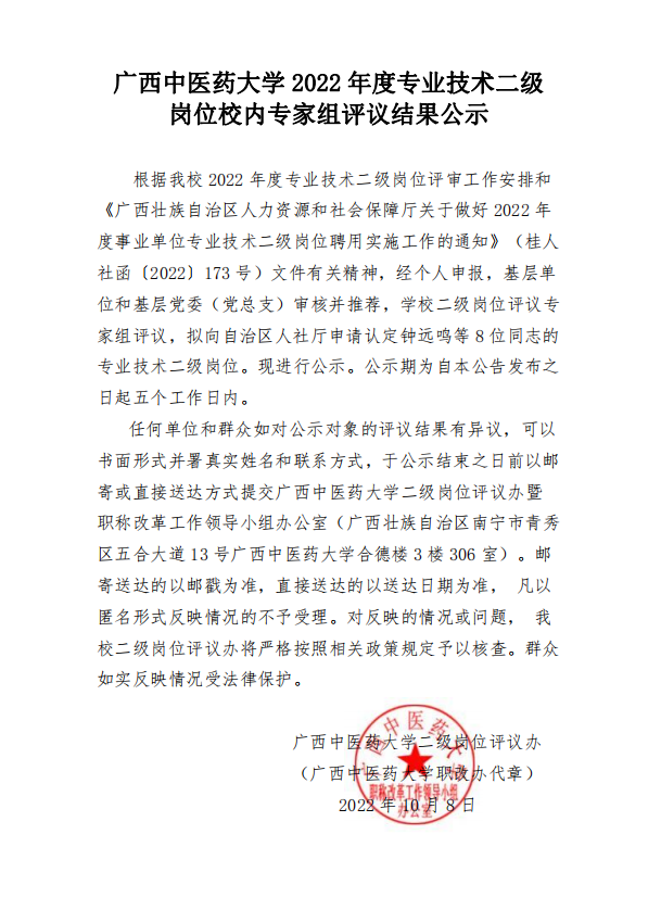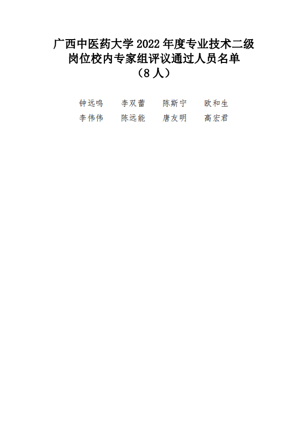 YABO鸭脖2022年度专业技术二级岗位校内专家组评议结果公示