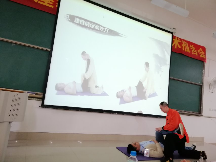 鄢行辉教授做了题为《中医运动康复技术》的学术报告,介绍了中医导引处方、传统针灸、点穴整脊理筋等疗法在颈肩腰腿疼及运动损伤防治中的运用,并与现场师生互动交流,学术报告会在老师同学们的热烈掌声中圆满结束。