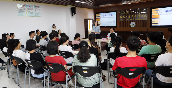 讲座前方晓义教授在公共卫生与管理学院与鸭脖师生进行沙龙活动
