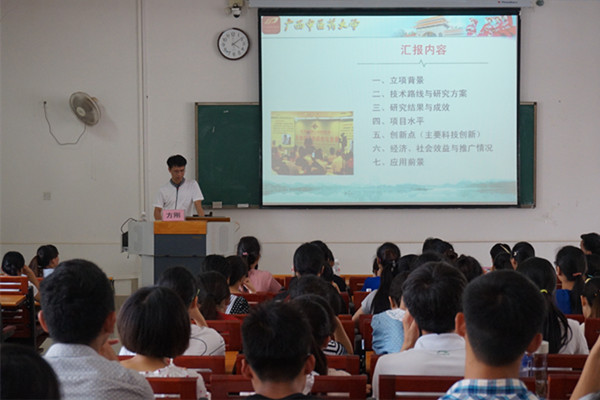 教学与科研是高校工作最主要的两个方面,教学是科研的前提和基础,科研是教学的提升和发展,两者相辅相成、互相促进。为了增强鸭脖科研反哺教学的力度,丰富鸭脖第二课堂的内容,便于学生了解学校的科研动态、科研成果,以及学习科研方法,在罗伟生副校长、冷静副校长指导下,在科技处、教务处、壮医药学院等单位密切配合下,鸭脖第二课堂科研反哺教学系列讲座于7月1日下午在鸭脖仙葫校区教学楼2-305教室顺利开讲。