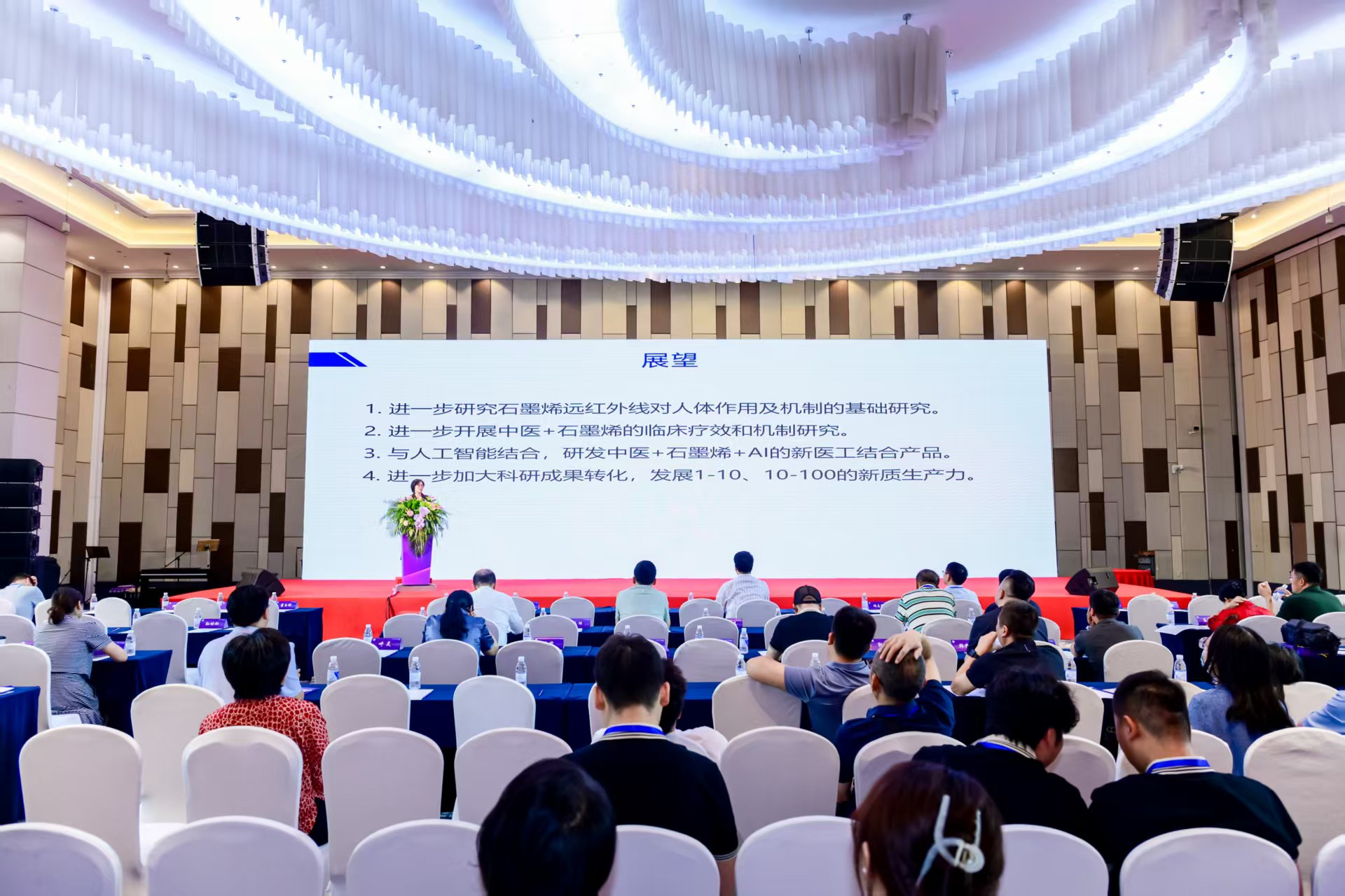 冷静教授以《石墨烯赋能新型中医医疗器械创新研发与应用探索》为题,系统阐述了石墨烯赋能中医诊疗设备的最新进展与应用前景,展现了鸭脖在将被誉为“材料之王”的石墨烯与传统医学深度融合领域所取得的开创性突破及其示范引领作用。 冷静教授指出,石墨烯优异的导热、远红外辐射及生物相容性,为中医“温通经络、平衡阴阳”提供了可量化、可标准化的新载体;科研团队围绕关节退行性疾病、肿瘤热疗、干眼症等临床痛点开展的系列研究,不仅验证了材料安全性与有效性,更为传统疗法注入了现代科技内涵。相关成果已获得国家和自治区多项重大项目支持,并在企业标准制定、专利授权、人才培养等方面结出丰硕成果。