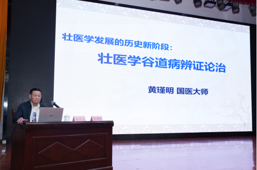 国医大师黄瑾明教授以题为《壮医学谷道病辨证论治》作学术报告,他围绕壮医学谷道病辨证论治的基本理论、为什么壮医学要发展辨证论治以及他对壮医学科学观的认识等几个方面对“谷道病”辨证论治的核心内容进行阐述。黄瑾明教授的精彩报告充分论述了壮医学发展的历史新阶段——壮医学谷道病辩证论治,提出了壮医学一要科学,二要实践,三要基础,四要整体性与辩证性,五要发展,归纳了壮医谷道病辩证论治体系六项主要内容:壮医谷道病病因病机辩证、病位辩证与基本证型、辩证治疗原则、辩证治疗基本方剂、辨证论治基本理论以及常用外治疗法。他以深厚的学术造诣,系统地阐述了壮医学在当代发展的里程碑,不仅构建了完整的理论框架,更为壮医学的未来发展指明了方向。