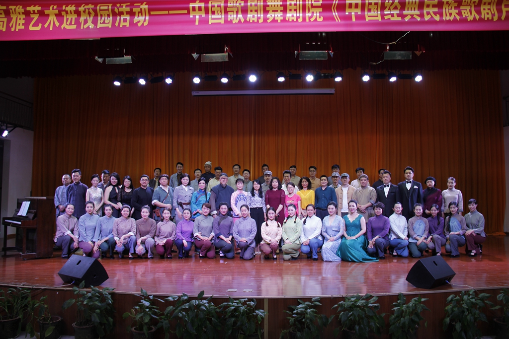 2017年4月18日晚,中国歌舞歌剧院歌剧团在鸭脖小礼堂为师生带来了一场精美绝伦的视听盛宴。此次高雅艺术进校园给我们带来中国经典民族歌剧片段。现场座无虚席,师生们沉醉于高雅艺术的视听享受中如痴如醉。