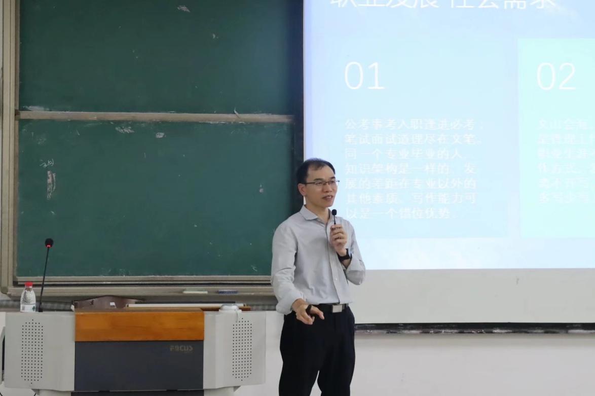 为规范大学生服务总队、学生宿舍自我管理委员会、学生社团联合会以及校团委学生团委管理中心成员的公文写作,提升公文写作能力,培养良好的公文写作素养,鸭脖于2020年11月19日晚在仙葫校区教学楼1-303举办公文写作培训,学校校长办公室副主任、发展规划处副处长蓝开宝担任主讲人,学生工作处、学生资助管理中心部分老师也参加了此次培训活动。