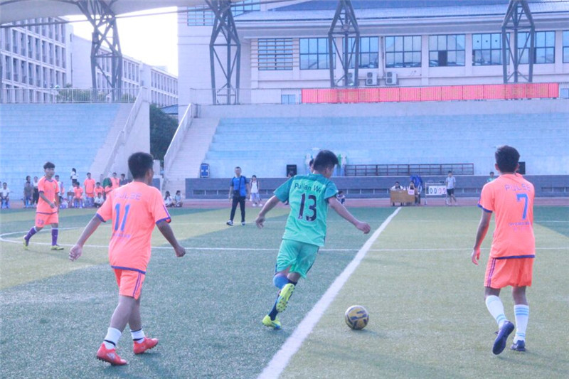 阳光明媚,温度上涨,伴随着同学们的热情和对本次比赛的渴望。双方球员都已做足准备,哨声响起,球员迅速反应使出全力争夺第一球,你拼我抢很快就进入了状态。球员那迅速的假转身,顺利的把球传到了靠近球门的队友那里,打起十二分精神的队友提起脚尖把球成功的射进了球门。观众的掌声和呼声祝贺了高职院以1:0领先,他们用努力的汗水拉开一分之差而取胜。