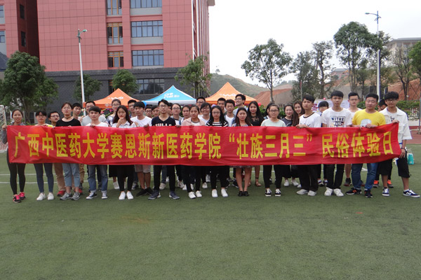 为弘扬中华民族传统文化,促进民族团结与进步, 4月15日上午,赛恩斯新医药学院团委联合艺术团、足球协会、篮球协会、青年志愿者协会以及心理协会在学院足球场共同举办了“壮族三月三·八桂嘉年华”系列活动之民俗文化体验日活动。