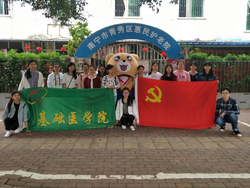 为增强党员和预备党员的社会责任感,让党员预备党员同志们了解社会,关注老年群体,从服务中学会关爱,学会感恩,把空巢老人的心声向全社会传达,同时加强易班志愿服务站的建设,基础医学院学生党支部于2017年4月23日在南宁市青秀区惠民护老院举办了以“背包走访,轻言细语,党暖人心”为主题的易班志愿服务。
