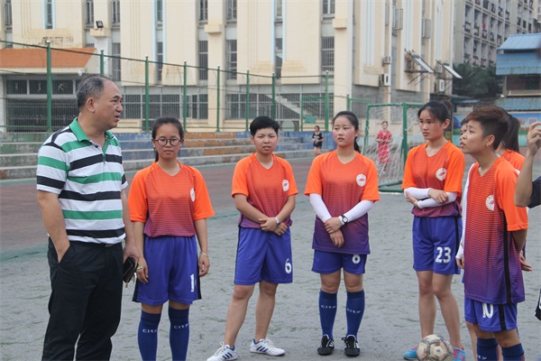 高职院刘竑清院长指导我院足球队训练