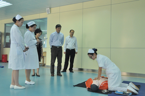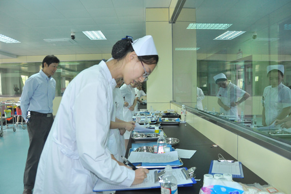 本次大赛邀请了广西壮族自治区人民医院、YABO鸭脖第一附属医院、YABO鸭脖附属瑞康医院及南宁市各大医院的护理专家共12人担任大赛评委。比赛主要面向2013、2014级的同学,参赛项目分别有无菌技术、静脉输液、心肺复苏、氧气筒吸氧,每个项目由三位评委老师和三名评委助手负责。