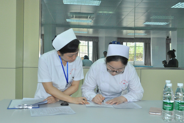 经过初赛的筛选,233名选手中有50%进入决赛。决赛中,在规定的时间内,同学们有条不紊的进行着繁多的护理操作,动作娴熟敏捷,声音清亮有力,操作准确无误,每位同学都以最佳的精神状态展现自己的风采。而评委老师们一丝不苟,对选手的每一个动作都严格认真地进行核对确认。