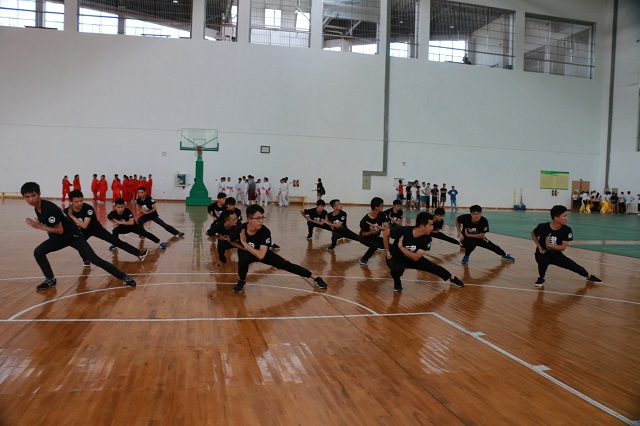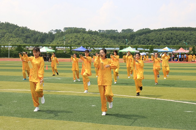 运动会期间,基础医学院共派出20个班级,共800余名学生参加了本届传统保健体育运动会二十四式简化太极拳、太极剑和三路长拳共三个项目的角逐。