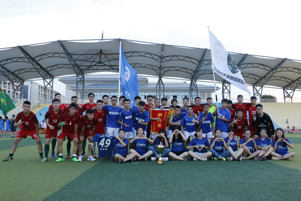 赛恩斯新医药学院男子足球队在YABO鸭脖“院系杯”中包揽冠亚军
