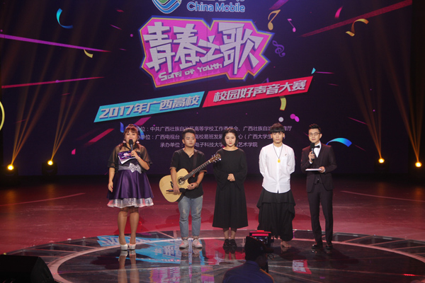 为了给怀揣音乐梦想,具有天赋的大学生提供一个展现音乐才华和青春活力的舞台,让他们用实际行动唱响青春,唱响中国梦。6月18日,由自治区高校工委、教育厅指导,广西电视台、广西高校易班发展研究中心主办的2017年广西高校“校园好声音——青春之歌”在广西电视台演播厅举办。到场嘉宾有广西音乐家协会、青年学会副主席兼秘书长谢斌,作曲家、硕士生导师赵琳教授,一级演员、广西著名瑶族青年歌唱家陈春燕,广西唱作青年歌手、二级演员、广西南宁市流行音乐协会副会长潘傲峰以及声乐表演专业肖玥老师。除了有重量级的评委出席以外,YABO鸭脖赛恩斯新医药学院,广西师范学院师园学院,广西艺术学院和广西教育学院的师生到场为选手们加油助威。