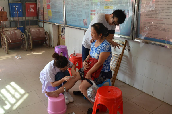 在义诊的过程中,有一位老奶奶见到前来义诊的同学们十分高兴,笑着称赞同学们的推拿手法技术好,为她缓解了身体的不适,同学们也开心地与老奶奶聊家常,并依据老人家的身体状况,在她的日常生活及饮食方面提出了需要注意的问题。