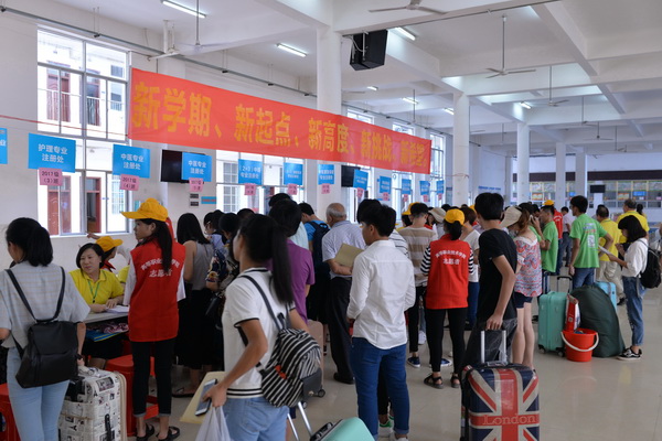 9月1日是广西中医学校2017级新生入学报到的日子,校园红幅高挂,一派生机盎然,来自广西区内外不同地方的新生,怀着对医学的求知梦想和对未来的憧憬,走进了附设中医学校。
