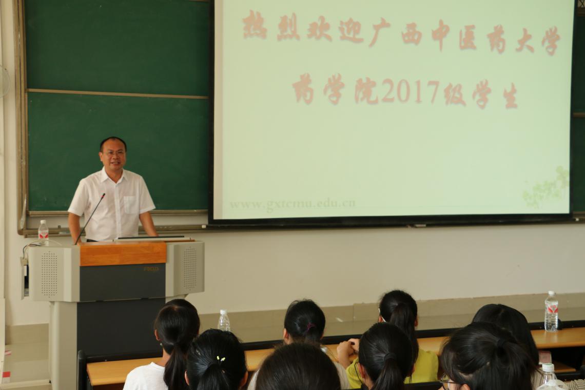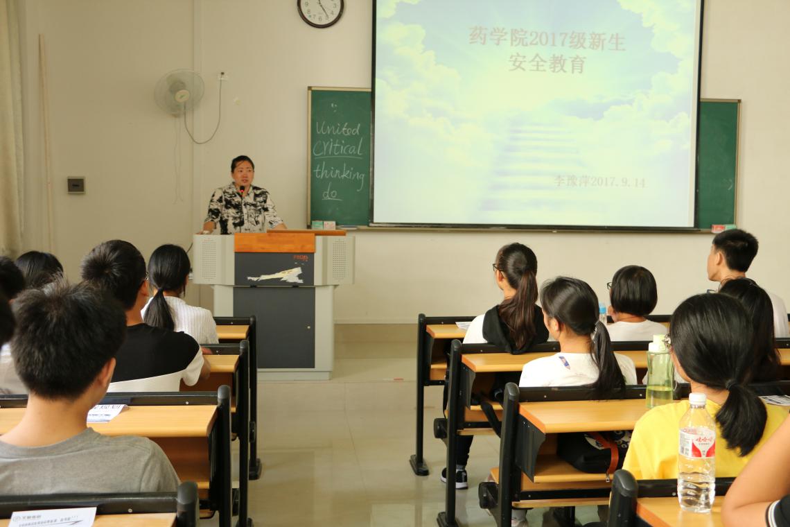 9月14日上午10时,药学院2017级师生见面会暨新生入学教育在仙葫校区1教107教室举行,参加见面会的有药学院领导奉建芳、李豫萍、秦华珍及辅导员凌勇威、黄鑫、孙慧玲、刘佳,班主任李源、杨思源、罗小莉、胡德辉、于迪等十余名老师, 2017级380余名同学。