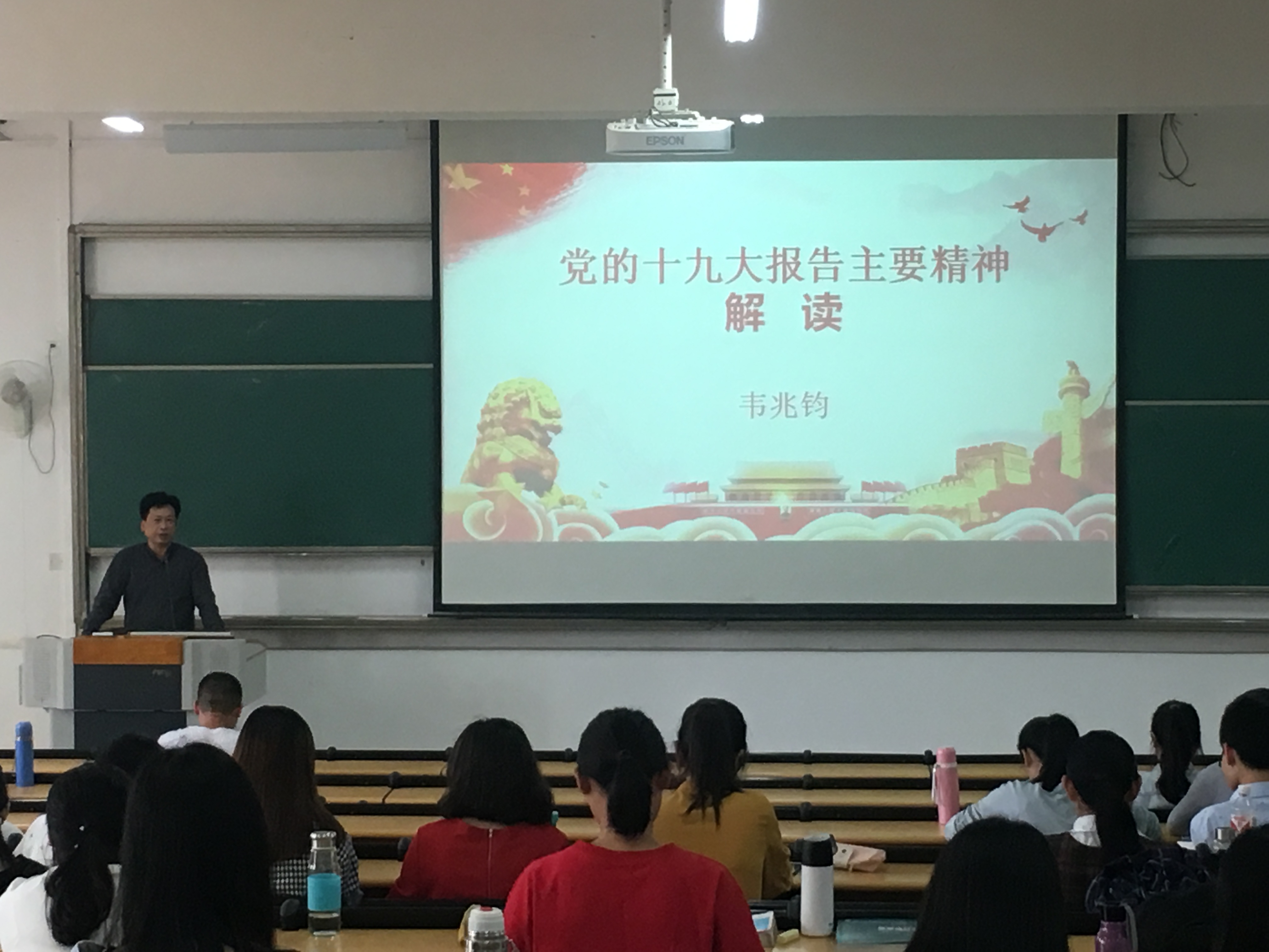 韦兆钧教授在课堂上为研究生解读党的十九大报告主要精神