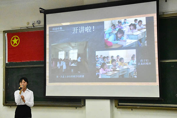 2017年暑期社会实践活动共有84支团队参加,总人数近5千人,实践地点布及广西、广东、四川、浙江等地区。他们来自不同的专业,不同的年级,通过医院实习、社会兼职调查、老年公寓临终关怀、贫困地区支教等形式,秉承中医“医以济世,术贵乎精”、“不忘初心,砥砺前行”的初衷,充实展现了我院学子的专业水平及综合工作能力。其中奇异果队、致远队、萤火虫队、特区队等11支团队表现特别突出,作为代表队汇报各自心得体会与收获,他们的发言获得在座同学的热烈掌声。