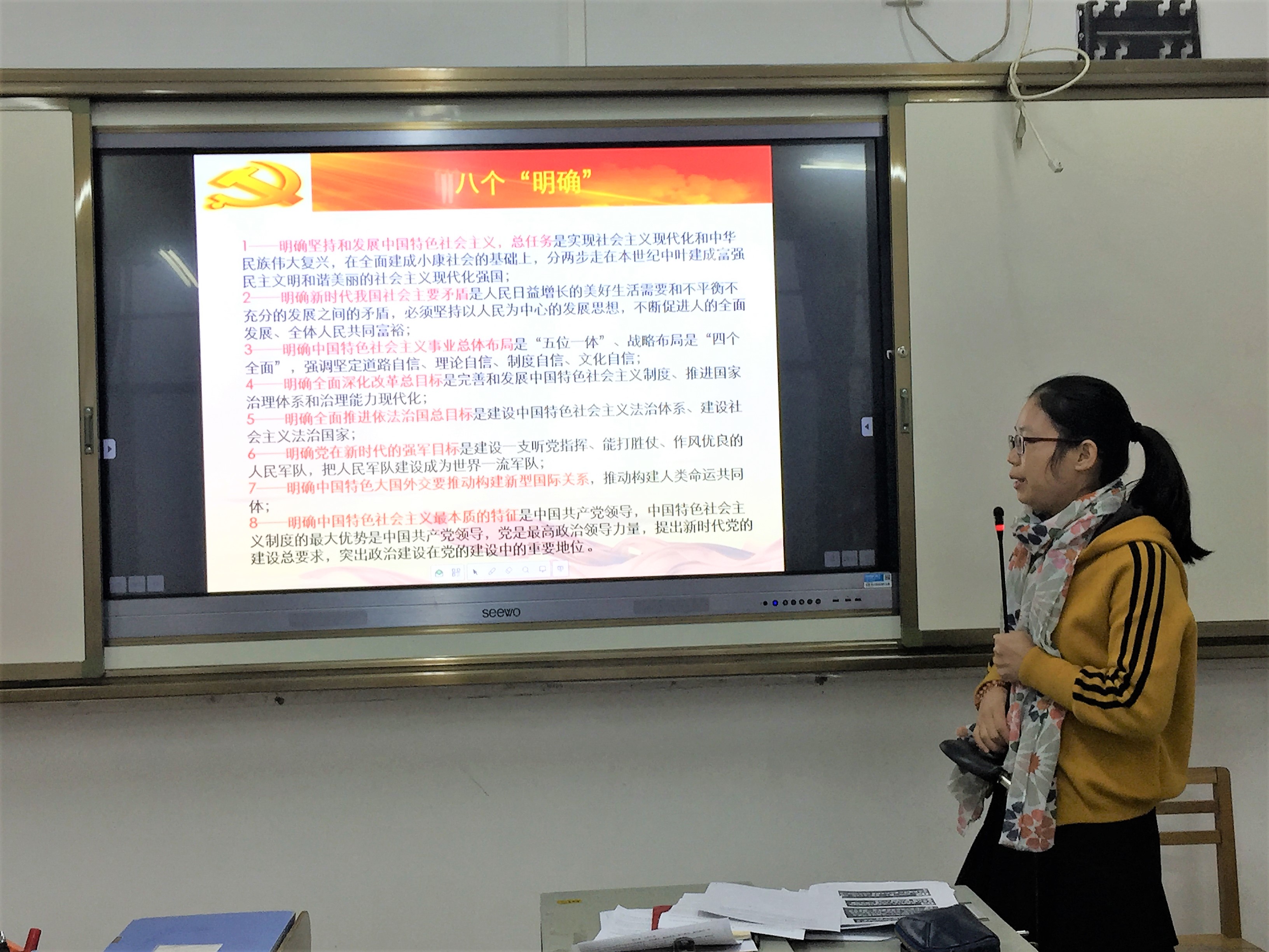 覃丽丽同志讲解党章修改内容
