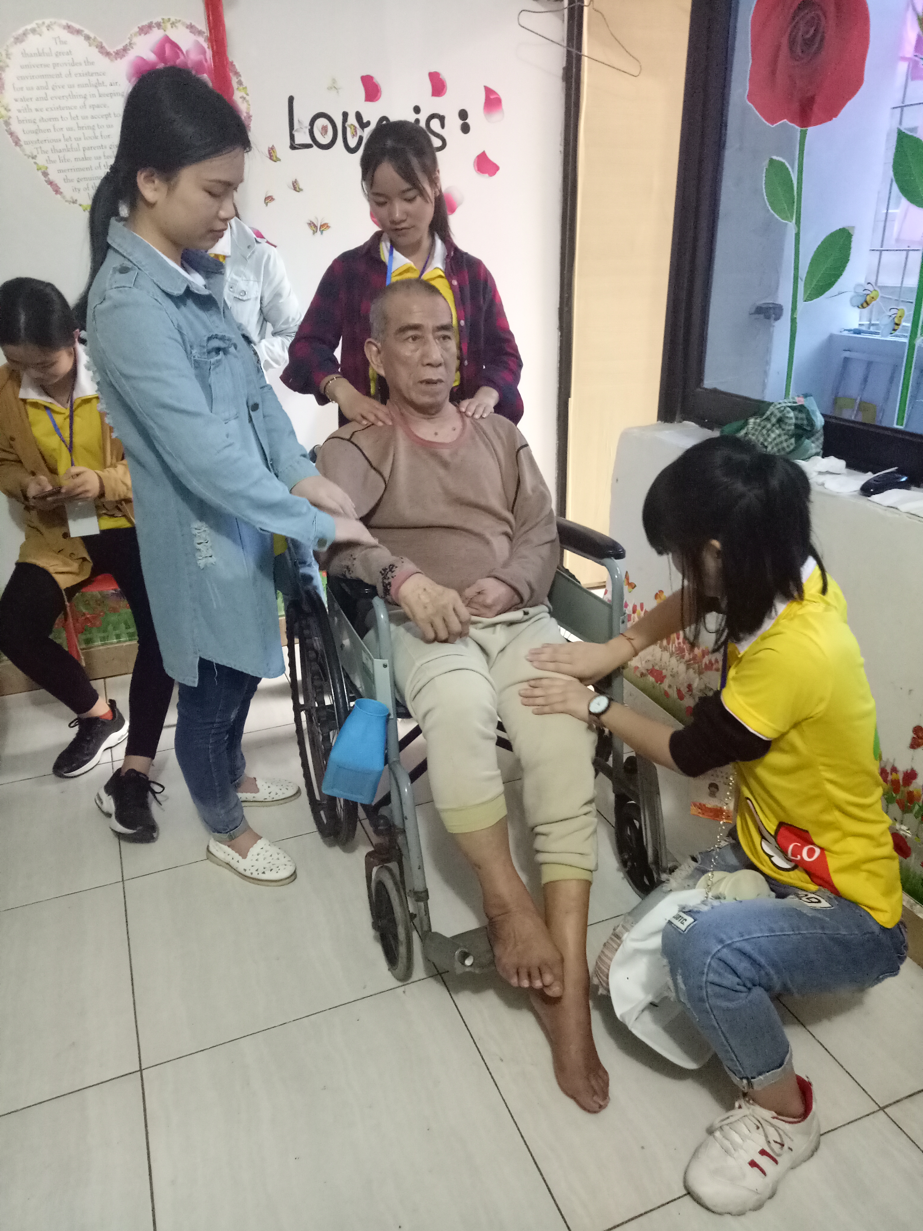 志愿者为敬老院老人按摩