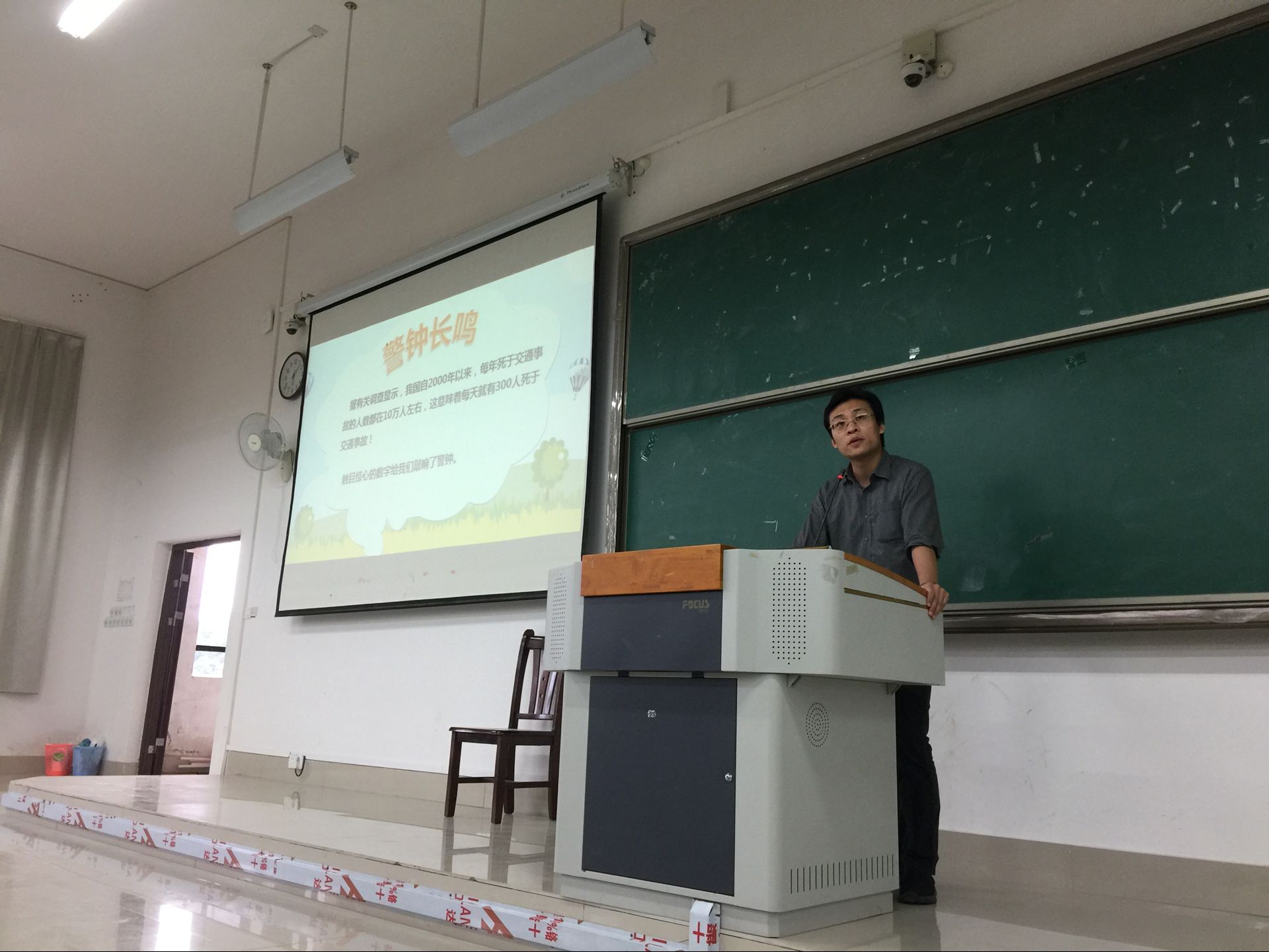 大会上,宋楠针对大一同学出行经验不多,同学们比较容易出交通事故、容易被行骗等几个方面进行教育,最后通过观看交通事故视屏来进一步引起同学们对交通事故严重后果的认识。