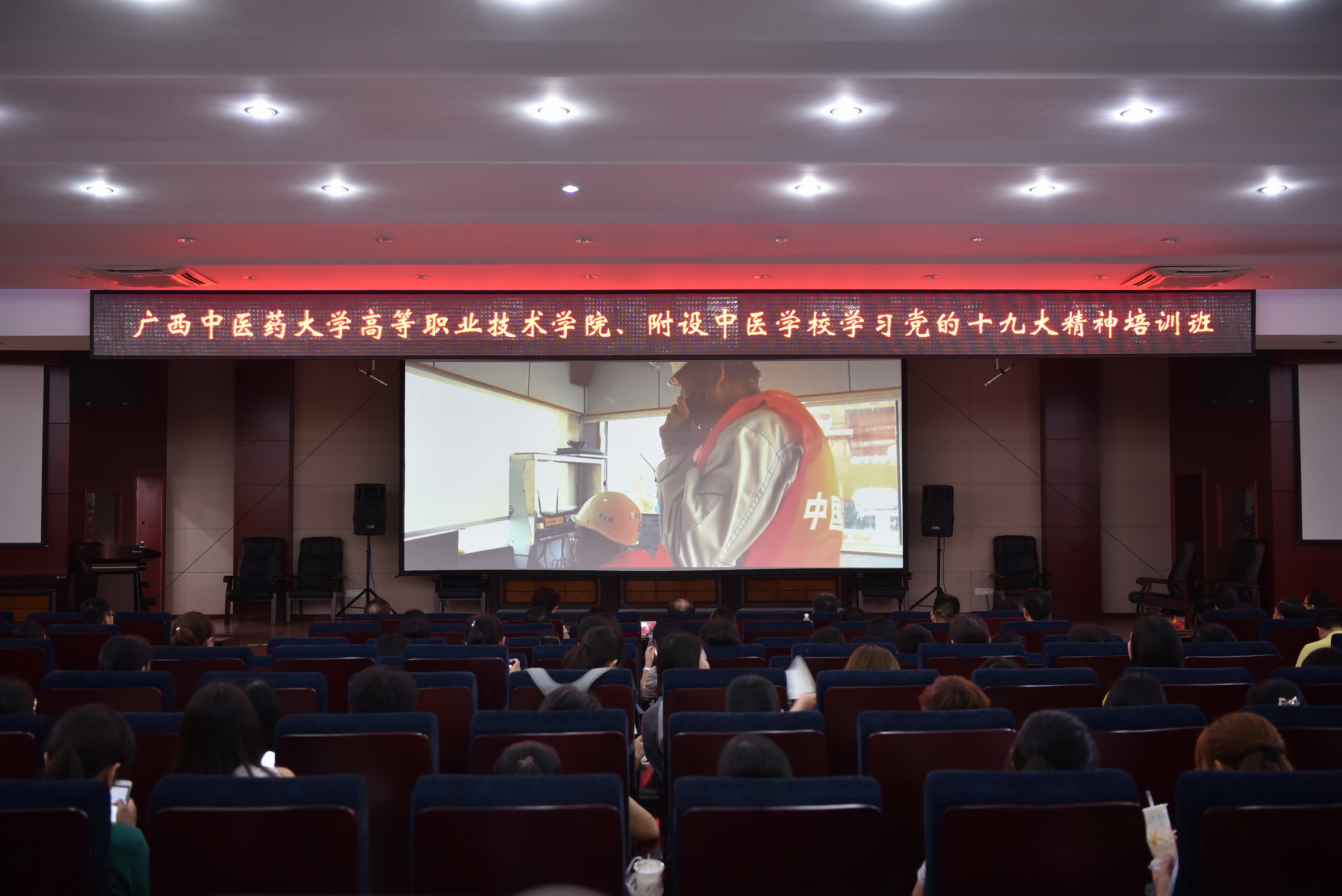 6月13日下午,高等职业技术学院、附设中医学校在北湖校区多功能报告厅举行学习党的十九大精神培训班,高等职业技术学院、附设中医学校全体教职工、学生党员和学生入党积极分子参加培训,会议由高职院、附设中医学校院(校)长刘竑清主持。