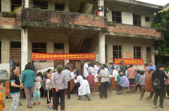 3月31日,壮医药学院党总支部分教师、学生党员来到对口扶贫对象——隆安县联伍村开展扶贫义诊党员活动。壮医药学院院长蓝毓营教授、副院长韦英才教授,瑶医药学院院长李彤教授,药学院覃骊兰教授,壮医药学院张萌副教授、刘儒鹏博士等专家参与此次活动。