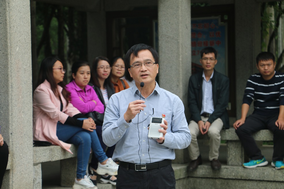 药学院党委为扎实推进“不忘初心、牢记使命”主题教育深入开展, 10月27日上午,药学院党委组织党支部书记、支委前往南湖公园李明瑞、韦拔群烈士纪念馆开展“不忘初心、牢记使命”主题教育轮训班现场教学活动。广西区委党校洪明星副教授担任本次现场教育活动授课老师。本次课程安排是药学院党支部书记主题教育轮训班的教学内容之一。