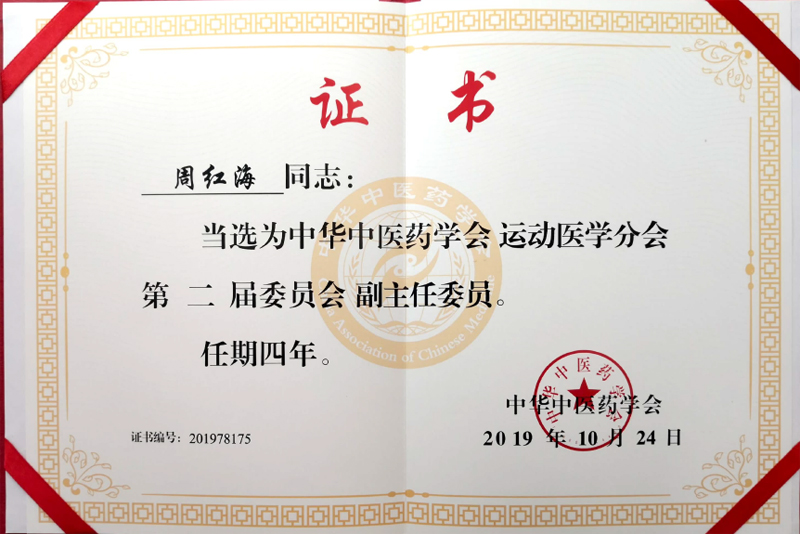 骨伤学院院长周红海教授连任中华中医药学会运动医学分会副主任委员