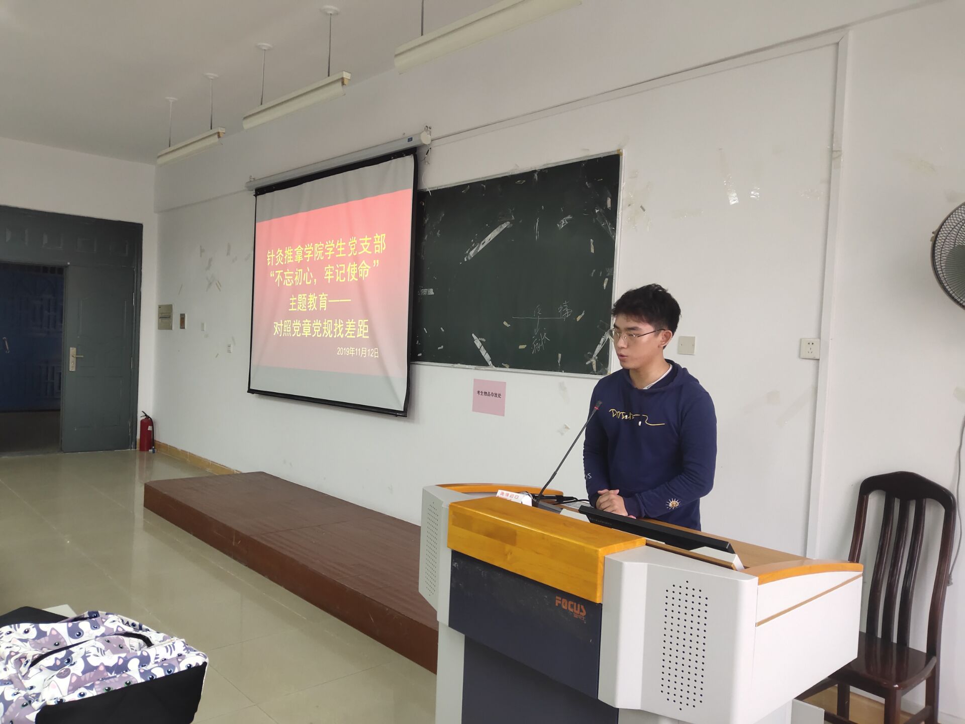 根据“不忘初心、牢记使命”主题教育的安排部署,11月12日下午,针灸推拿学院党总支在明秀校区西一教室、新东三教室分别召开了教工党支部、学生党支部对照党章党规找差距专题会议,会议由各支部书记主持,在校的全体党员参加了会议。