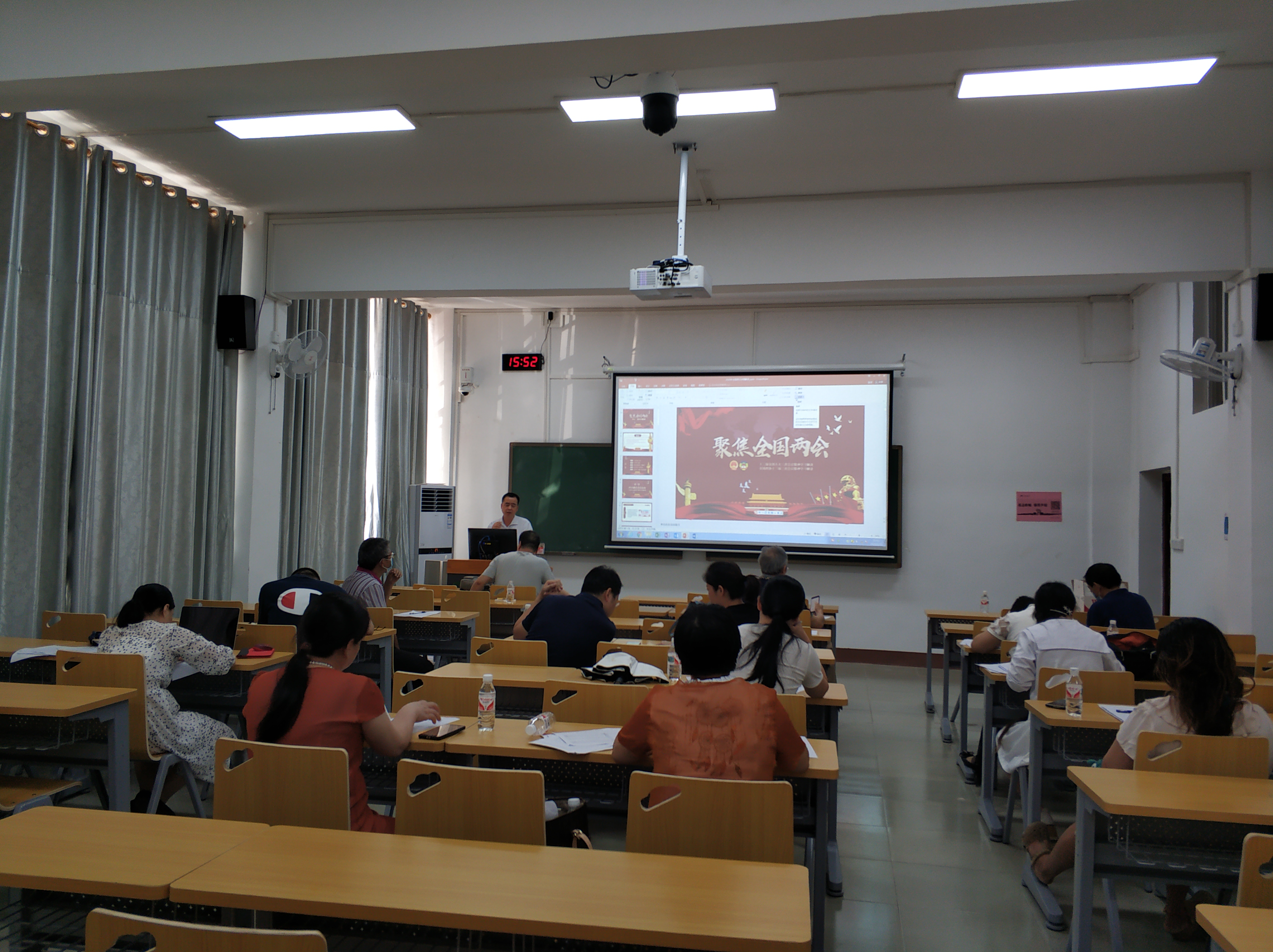 6月23日下午,针灸推拿学院党总支在明秀校区时珍楼104教室开展了全国“两会”专题学习,蒋闽义书记主持,并以“聚集全国两会”为主题介绍了全国两会精神,针灸推拿学院全体教职员工参加了此次学习。
