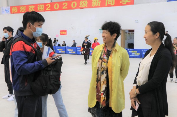 护理学院党委书记、院长吴彬、党委副书记韩叶芬与新生亲切交谈