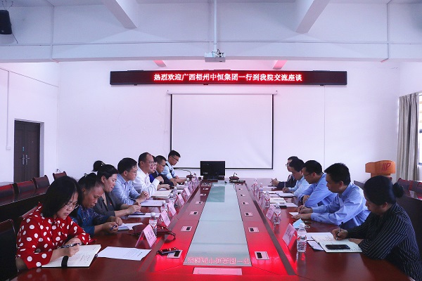 11月9日下午,广西梧州中恒集团股份有限公司党委副书记梁建生一行5人到我院交流,药学院党委书记蒋林、院长奉建芳及班子成员、教师代表十余人参会。