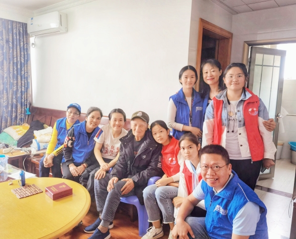 志愿者们与老兵在一起