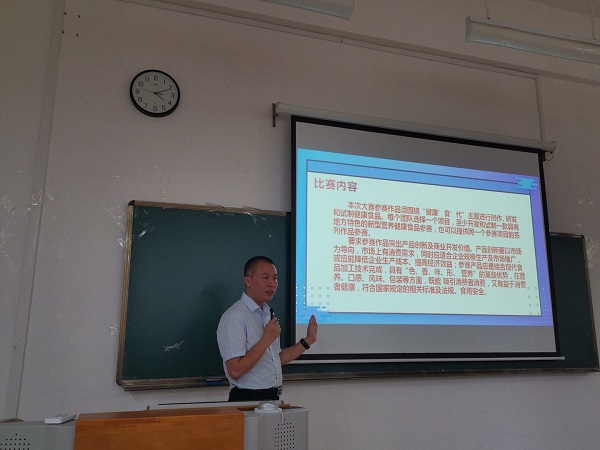 药学院领导对比赛高度重视,对备赛工作提出明确要求和殷切鼓励。在举办校内初赛、校代表队培训等每个环节认证部署,力求精益求精。9月30日组织初赛选拔代表队并由食品科学系主任谭强教授进行赛前培训指导。经过精心组织、严格选拔、培训,最终由谭强、谢文佩和孙一铭三位老师带队,派出5支队伍参赛。通过PPT路演和作品展示两个环节激烈角逐,鸭脖在本次大赛中获得二等奖2项、三等奖2项。