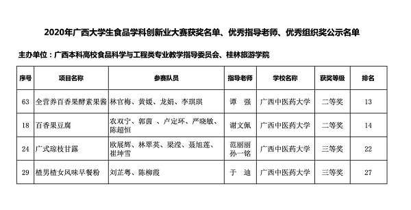 药学院在2020年广西区大学生食品学科创新创业大赛中喜获佳绩