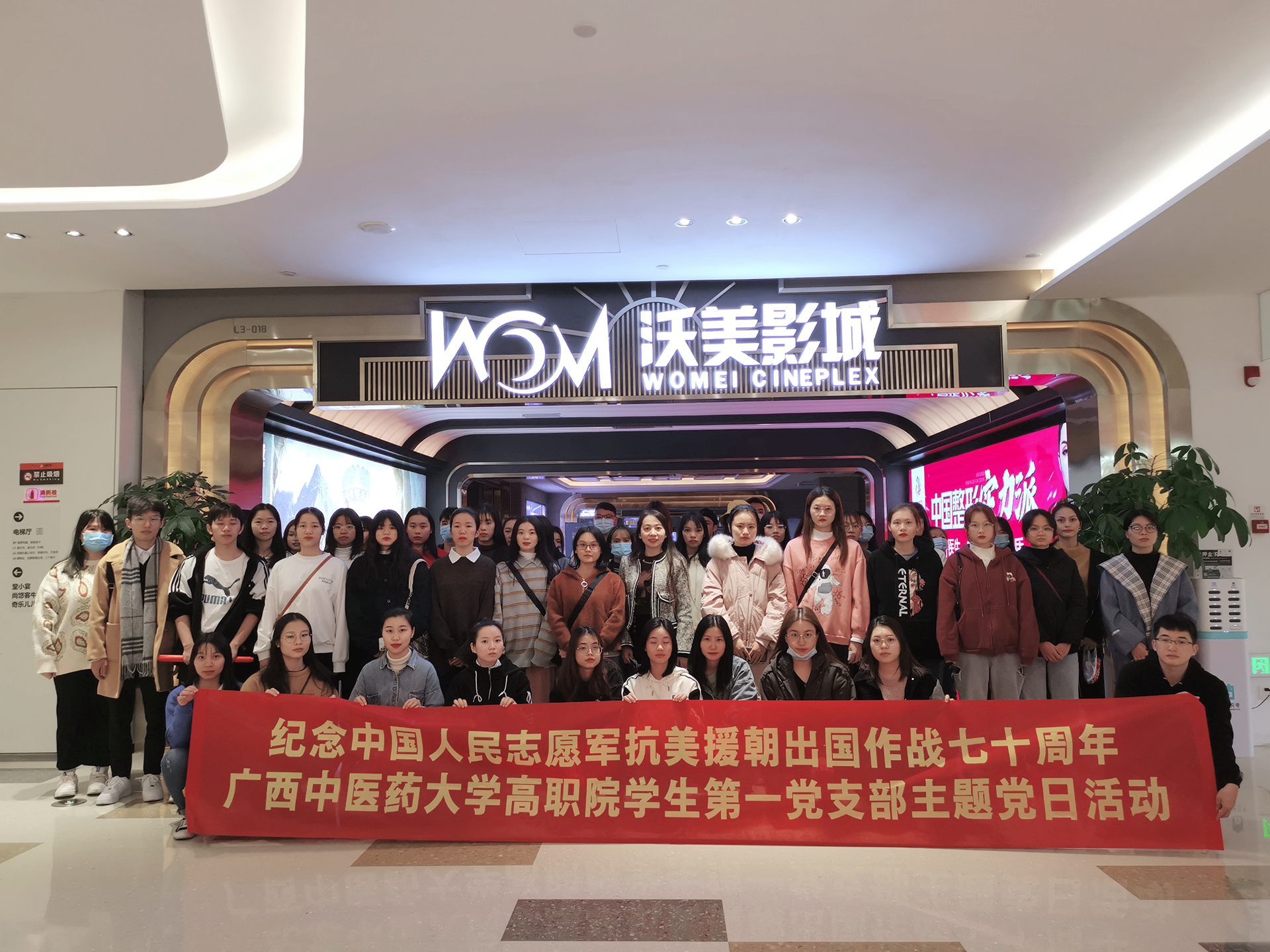 为纪念中国人民志愿军抗美援朝出国作战70周年,在广大师生中弘扬伟大的抗美援朝精神和爱国主义精神,也为了更好加强党对共青团的领导,扎实推动我院共青团建设和青年成长成才,发挥“党建带团建”优势,高职院学生第一党支部组织支部党员、预备党员及部分入党积极分子共75人开展观看电影《金刚川》主题党日活动。